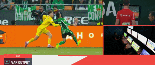 第88分钟,安东尼危险动作踢到对方头部,VAR介入后裁判改判红牌